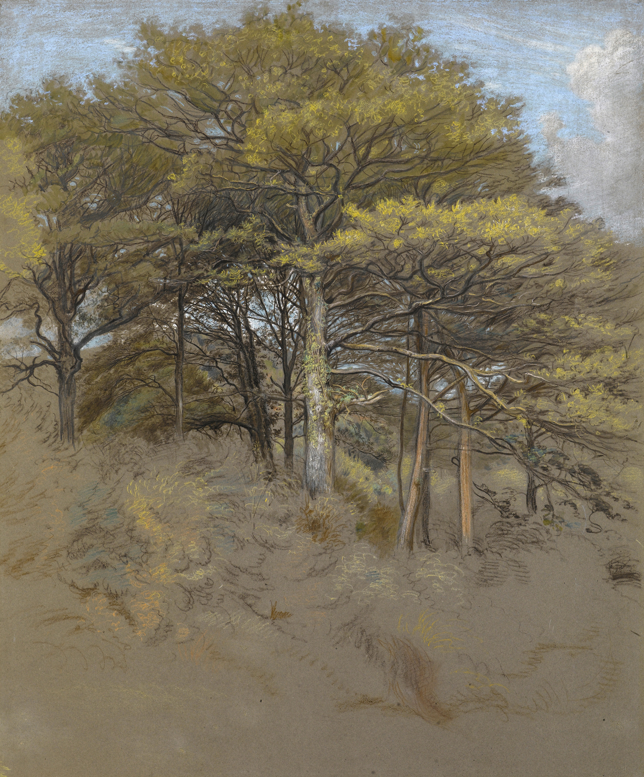 Many of Linnell’s landscapes were painted in and around the Redstone estate at Redhill, which his father had acquired in 1851 and where the entire family lived. In 1872, a critic observed: ‘It is so rare an occurrence to find a picture by any one of the Linnell family bearing the distinctive title of the place represented, that one would naturally be led to suppose the compositions are merely imaginary; but this, as a rule, is far from the case. Surrey, and the wealds of Sussex, supply the artists with the groundwork of most of their beautiful compositions, and the localities may generally be recognised by those who are well acquainted with them.’